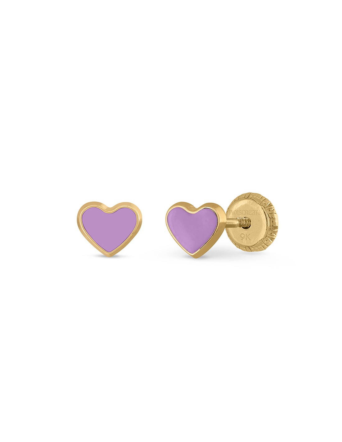 Para nuestras DISCREETITAS estos pendientes de corazón son una monada. Esmaltadas en color morado. Súper seguros y cómodos, tienen el tamaño perfecto para que las más peques puedan usarlos a diario sin problemas.