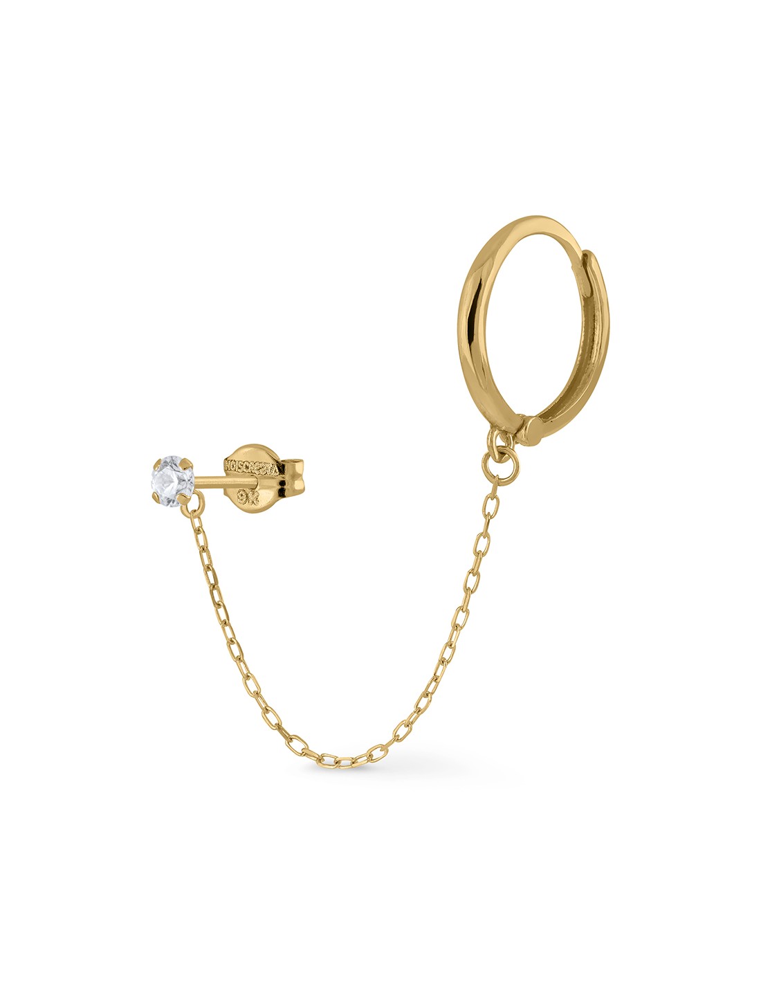 ARO HUGGIE COMBINADO CON PENDIENTE CIRCONITA EN ORO AMARILLO DE 9K