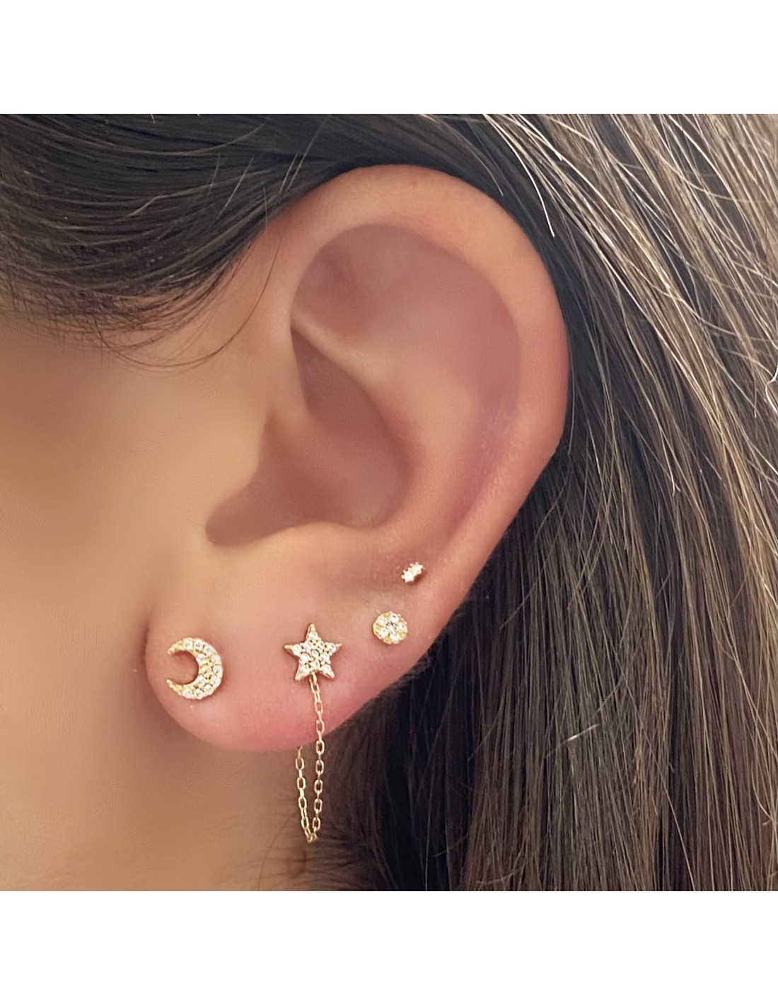 PENDIENTE ESTRELLA CON CIRCONITAS Y CADENA EN ORO AMARILLO DE 9K
